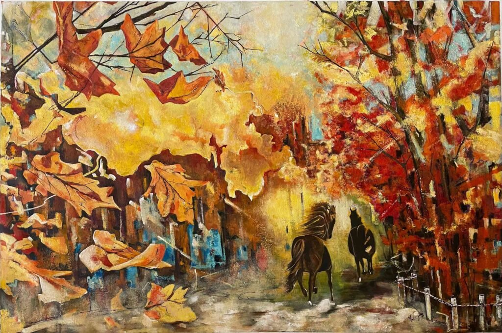 This piece was commissioned for a new home..a bright landscape in vibrant colours depicting life.