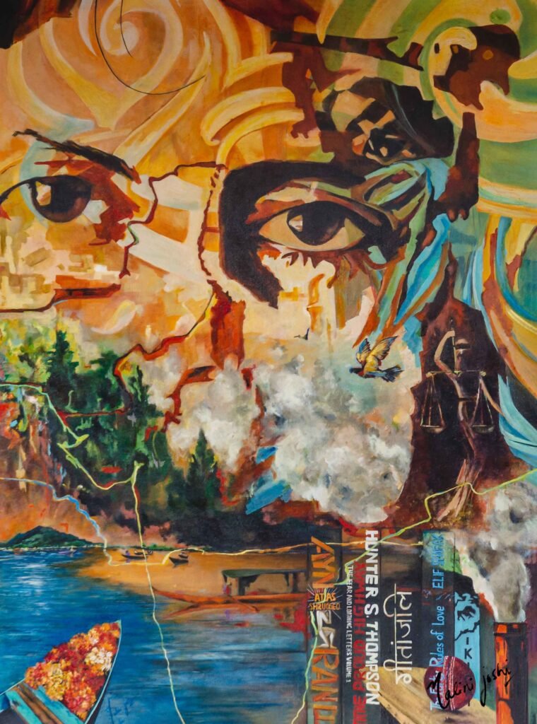 Tera Aks (meaning your reflection) was commissioned as a gift for Priyanshu Chaterjee (Indian Actor). The Idea was to paint something that reflects his essence as an actor and as a person..